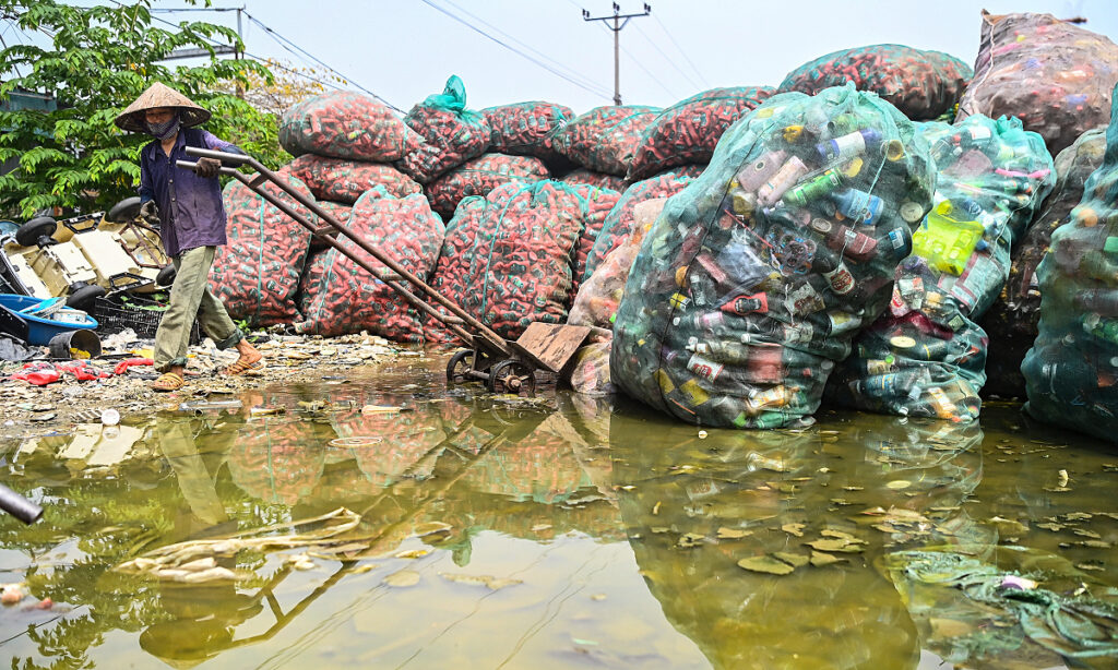 Rác nhựa sau phân loại tại xã Quảng Phú Cầu, huyện Ứng Hòa, Hà Nội, năm 2022. Ảnh: Giang Huy