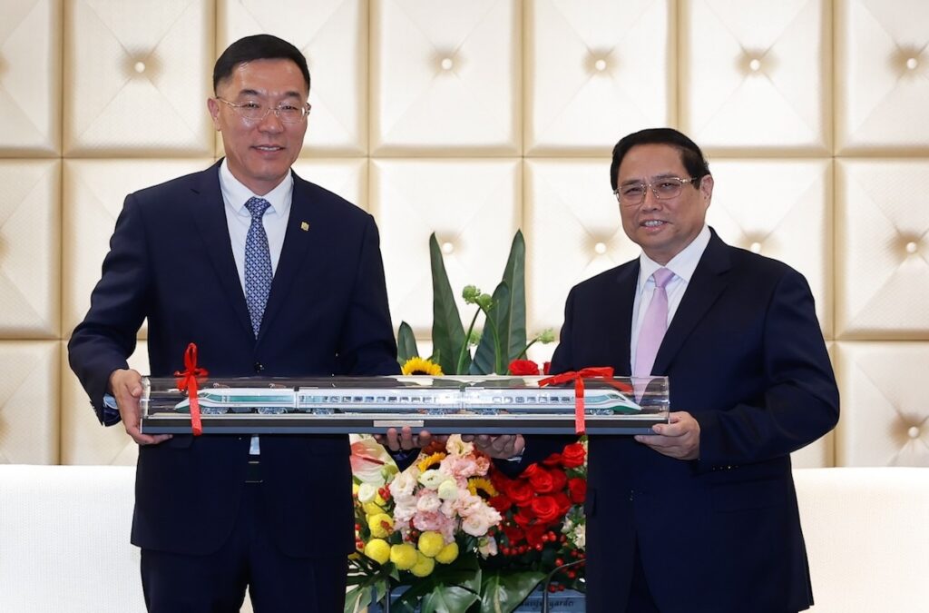 “Bối cảnh hiện nay, Việt Nam nhìn nhận khác và sẽ ưu tiên đầu tư đường sắt thời gian tới, do có thể thay thế nhiều loại hình vận tải khác với giá thành rẻ, phù hợp”, Thủ tướng Phạm Minh Chính nói, đồng thời đề nghị doanh nghiệp Trung Quốc giúp Việt Nam xây dựng ngành công nghiệp đường sắt, chuyển giao công nghệ, đào tạo nguồn nhân lực.