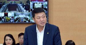 Tổng giám đốc BIDV Lê Ngọc Lâm phát biểu tại một cuộc họp do...