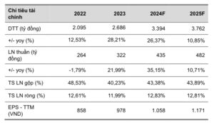 VCBS dự phóng doanh thu năm 2024 của doanh nghiệp này đạt 3.394 tỷ đồng...