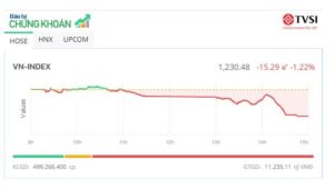 338 cổ phiếu chuyển sắc đỏ, giảm mạnh nhất là nhóm chứng khoán và ngân...
