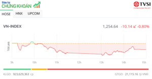 Kết phiên 22-7, chỉ số VN-Index giảm 10 điểm (-0,8%), đóng cửa tại 1.254 điểm...