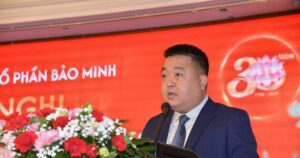 Ông Vũ Anh Tuấn-Tổng giám đốc Bảo Minh phát biểu tại hội nghị tổng kết...