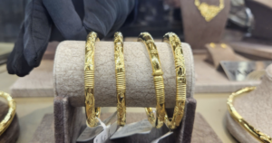 Một nhân viên đúc thỏi vàng nguyên chất 99,99 phần trăm trong phòng làm việc...