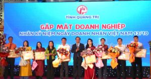 Lãnh đạo tỉnh tặng hoa chúc mừng Hiệp hội Doanh nghiệp tỉnh (Ảnh: S.H) Doanh...