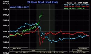 Tối 16/8, giá vàng thế giới giao ngay tăng vọt ngay khi phiên Mỹ vừa...