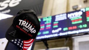 Một chiếc mũ ủng hộ ứng cử viên Cộng hòa Donald Trump được thấy tại...