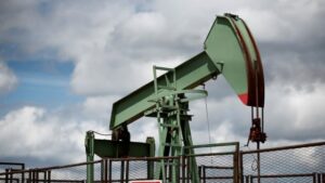 Một máy bơm đang hoạt động tại địa điểm Vermilion Energy ở Trigueres, Pháp, ngày...