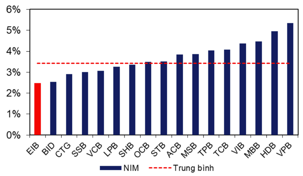 EIB đang có NIM thấp nhất trong số các NHTM trong ngành ngân hàng Việt Nam.