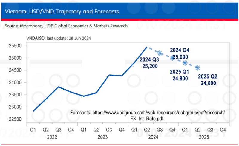 Tỷ giá được dự báo sẽ ở mức 25.000VND/USD vào cuối 2024. (Nguồn: UOB)