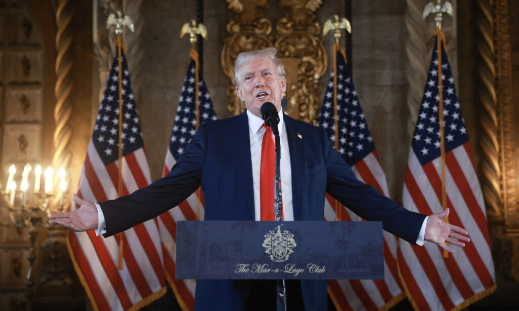 Cựu Tổng thống Mỹ Donald Trump trong một cuộc họp báo tại dinh thự Mar-a-Lago. Ảnh: Reuters