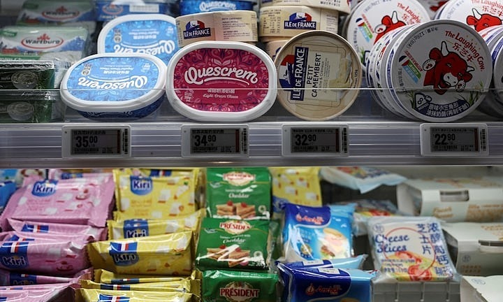 Các sản phẩm từ sữa được bày bán tại một siêu thị ở Bắc Kinh. Ảnh: Reuters