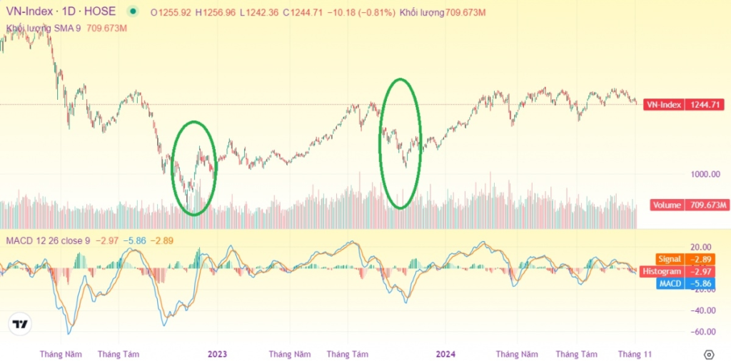 VN-Index mở cửa tuần giao dịch mới với mức giảm hơn 10 điểm, đưa chỉ số về dưới ngưỡng 1.245 điểm. Ông Đinh Quang Hinh từ Chứng khoán VNDirect nhận định rằng, thị trường đã có tín hiệu tích cực nhờ kết quả kinh doanh quý III của các doanh nghiệp niêm yết tăng trưởng mạnh, giúp cải thiện định giá và hỗ trợ tâm lý nhà đầu tư. Vùng 1.240-1.250 điểm sẽ là ngưỡng hỗ trợ mạnh cho VN-Index, đặc biệt với các nhóm cổ phiếu có triển vọng tốt trong những tháng cuối năm như ngân hàng, bất động sản và xuất khẩu.