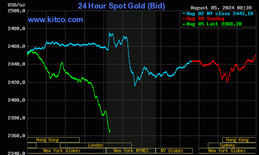 Giá vàng thế giới lao dốc trong phiên 5/8. Đồ thị: Kitco