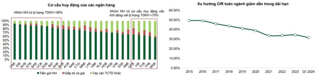 Công ty Chứng khoán này cũng cho rằng, động lực tăng trưởng lợi nhuận của hệ thống ngân hàng sẽ đến từ các ngân hàng với tiềm năng đến từ các yếu tố như: Thứ nhất, tối ưu hóa chi phí vốn. Trong bối cảnh môi trường lãi suất huy động đang chịu nhiều áp lực tăng trở lại, nhóm ngân hàng tư nhân có lợi thế về CASA và linh động trong hoạt động huy động vốn (với mức độ phụ thuộc vào tiền gửi khách hàng không quá cao) sẽ có nhiều tiềm năng tối ưu hóa được chi phí vốn, qua đó cải thiện được lợi nhuận.