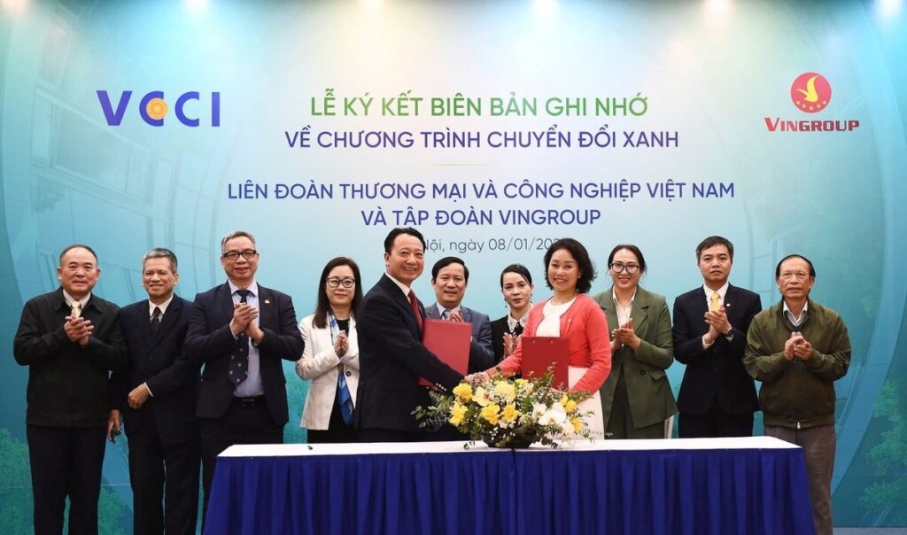 Theo Tạp chí Diễn đàn Doanh nghiệp, ngày 8/1/2025, Liên đoàn Thương mại và Công nghiệp Việt Nam (VCCI) và Tập đoàn Vingroup – CTCP (VIC) đã ký kết Biên bản ghi nhớ hợp tác toàn diện về thúc đẩy chuyển đổi xanh và phát triển bền vững.