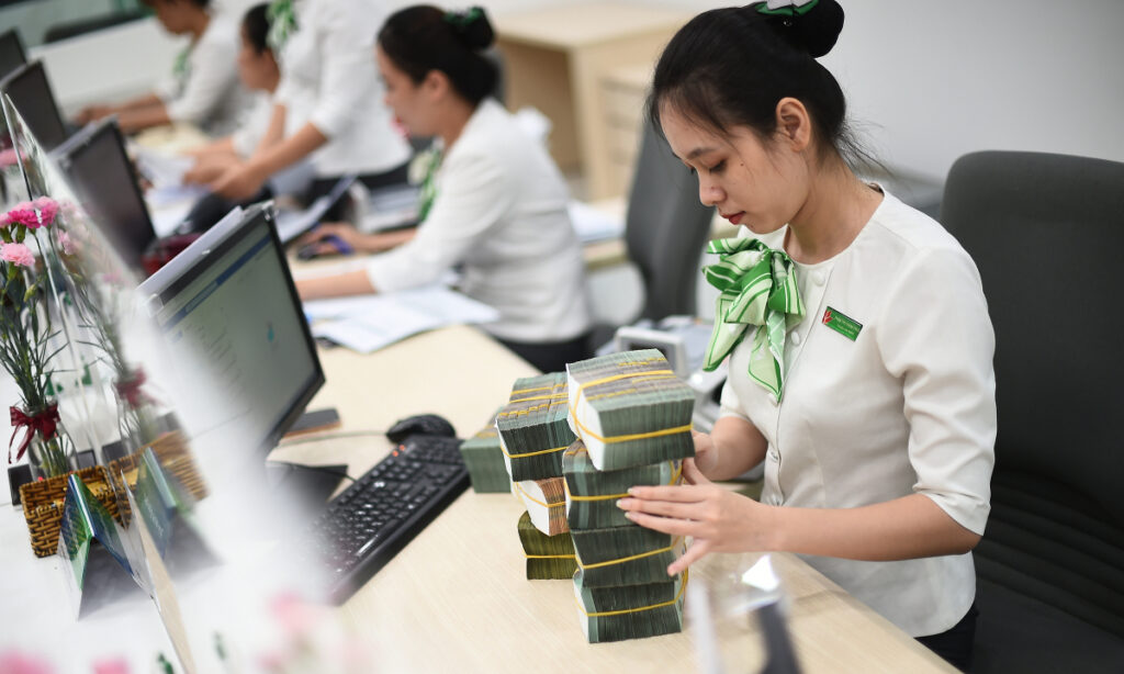 Nhân viên đang kiểm đếm tiền tại quầy giao dịch của một ngân hàng ở TP HCM. Ảnh: Thanh Tùng