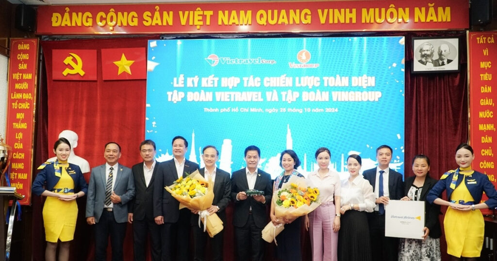 Chiều ngày 25/10/2024, Tập đoàn Vietravel và Tập đoàn Vingroup (VIC) ký thỏa thuận hợp tác toàn diện nhằm thúc đẩy mạnh mẽ chuyển đổi xanh trong kinh doanh, hướng tới mục tiêu phát triển bền vững cùng nâng cao năng lực cạnh tranh của thương hiệu Việt Nam trên trường quốc tế.