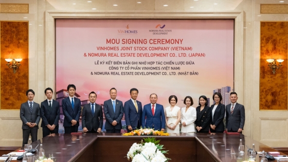 CTCP Vinhomes (Mã CK: VHM) và Tập đoàn Nomura Real Estate (Nhật Bản) đã ký kết biên bản ghi nhớ (MoU) hợp tác chiến lược toàn diện trong các lĩnh vực trọng tâm: Bất động sản nhà ở, bất động sản thương mại, logistics và các lĩnh vực trọng tâm khác liên quan đến bất động sản.
