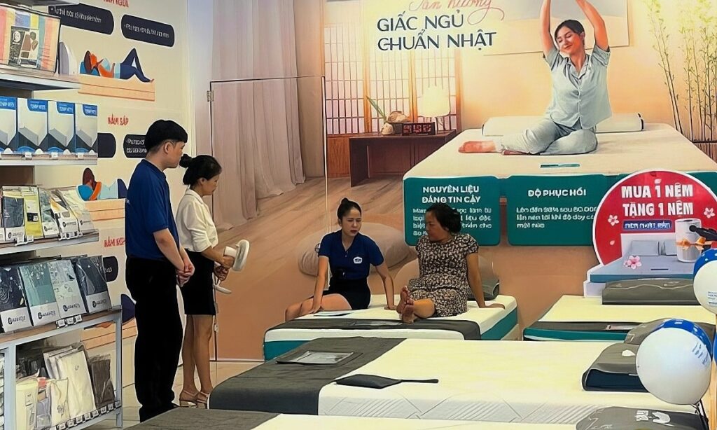 Khách đang thử sản phẩm tại một cửa hàng Vua Nệm. Ảnh: Vua Nệm