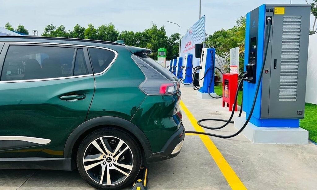 Xe điện tại một trạm sạc ở Hải Phòng, tháng 4/2022. Ảnh: Anh Minh
