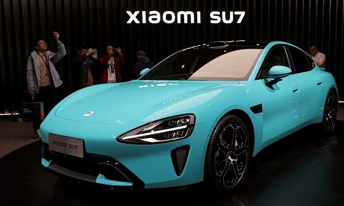 SU7 – xe điện đầu tiên của Xiaomi – trưng bày tại Bắc Kinh. Ảnh: Reuters